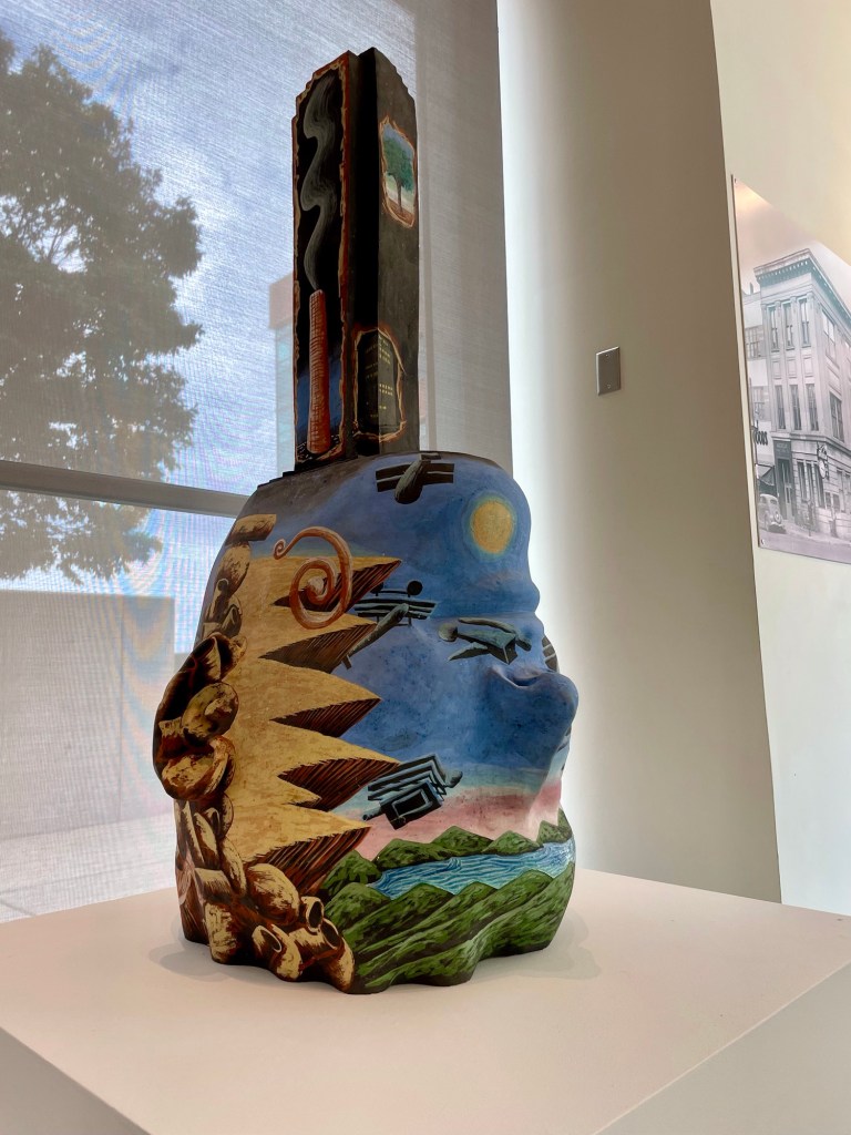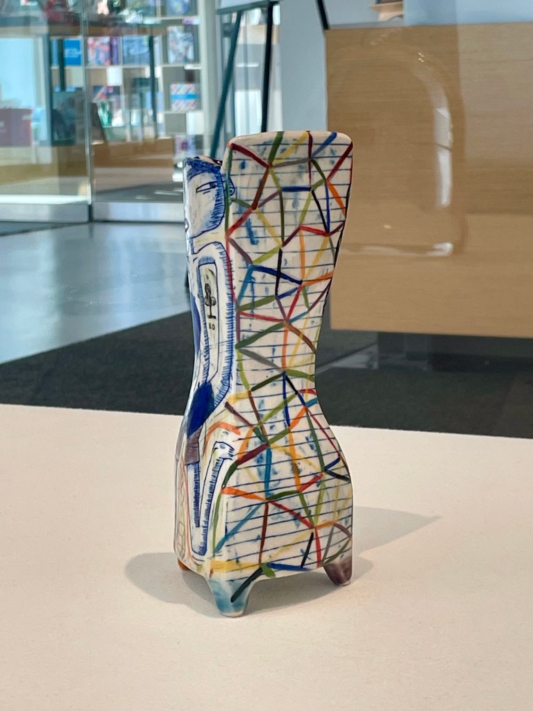 The Racine Art Museum, located at 441 Main Street, is known for its celebration of craft and boasts the title of being “America’s Home for Contemporary Craft”. Inside, they curate truly impressive works that evoke a conversation of both narrative and process. When I say “narrative”, I am referring to the visual story that the artist has created on the surface of the piece, and “process” refers to how they created the piece, what materials, how did they apply color, lines, etc.