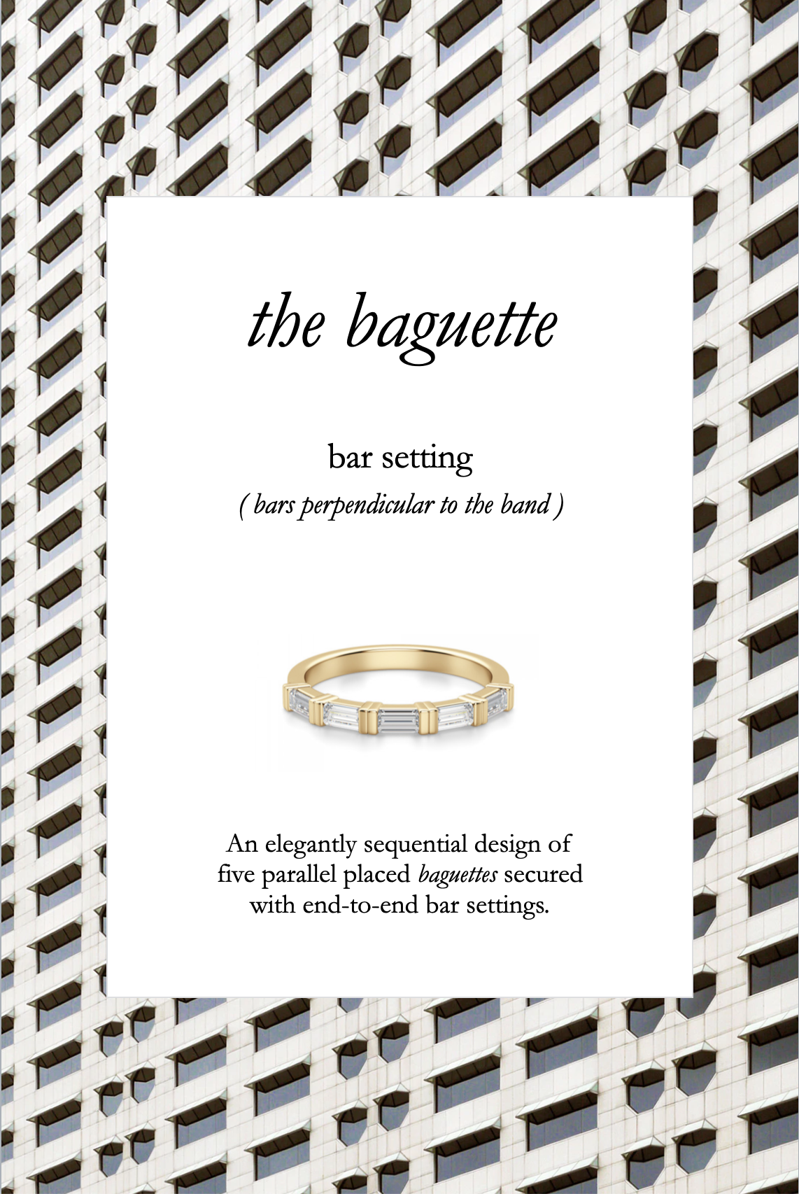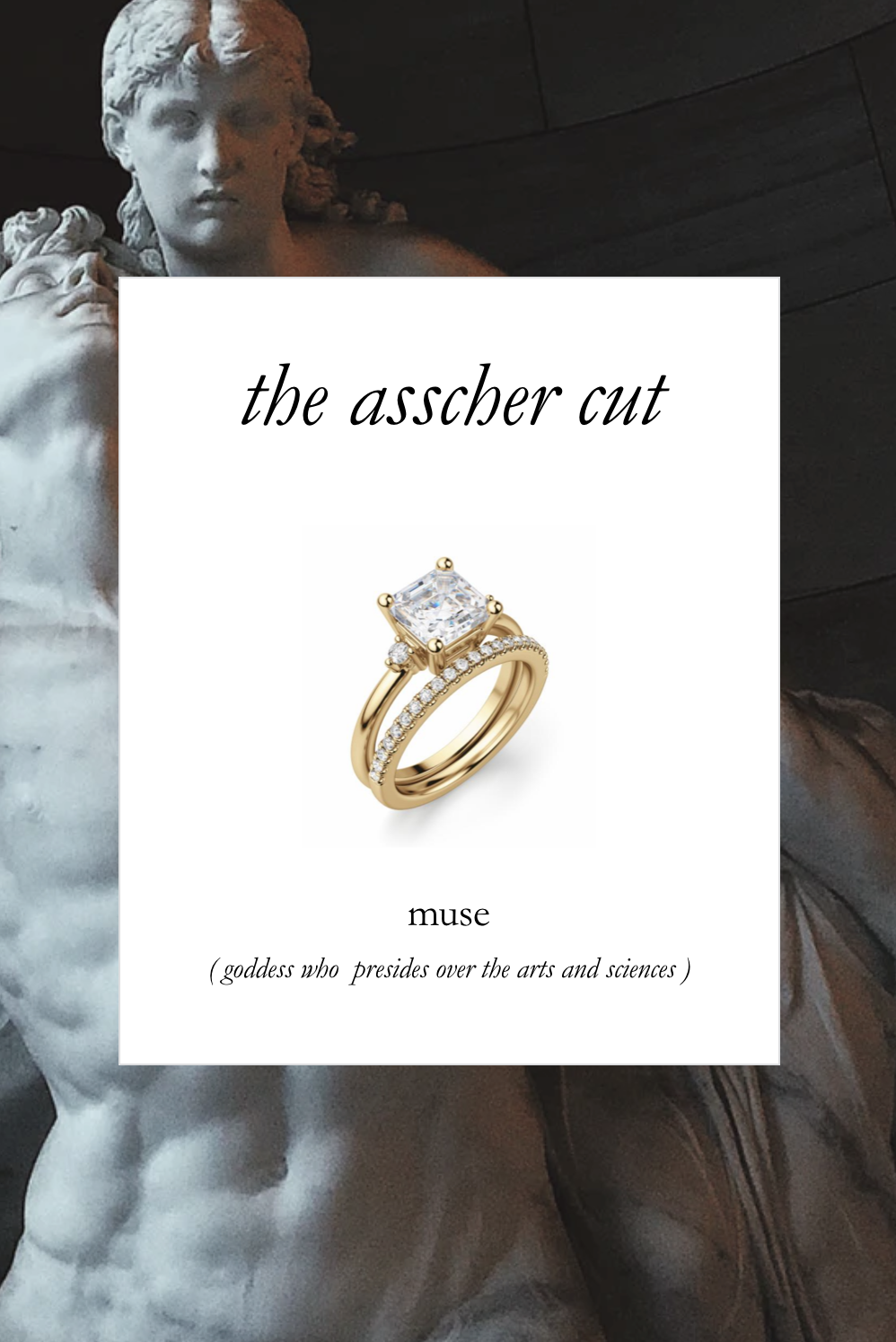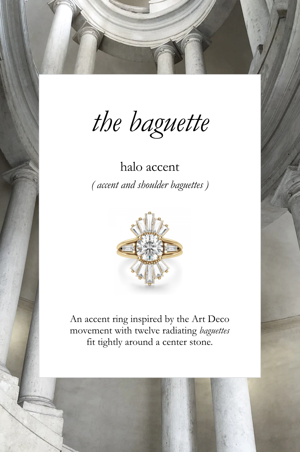 . Each ring is placed over a curated image that correlates with the design of the jewel.