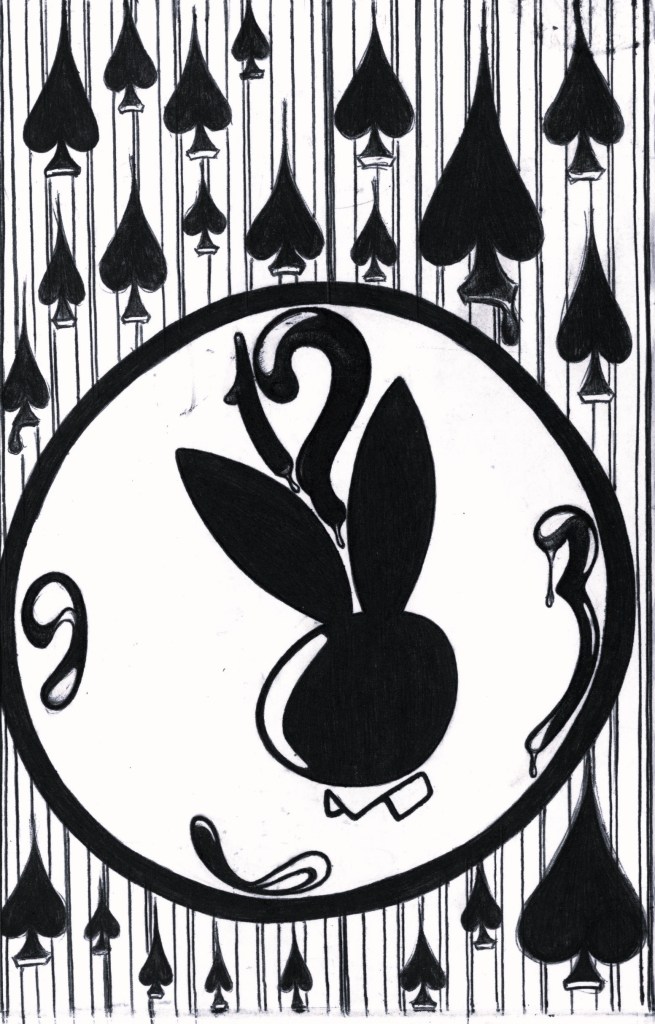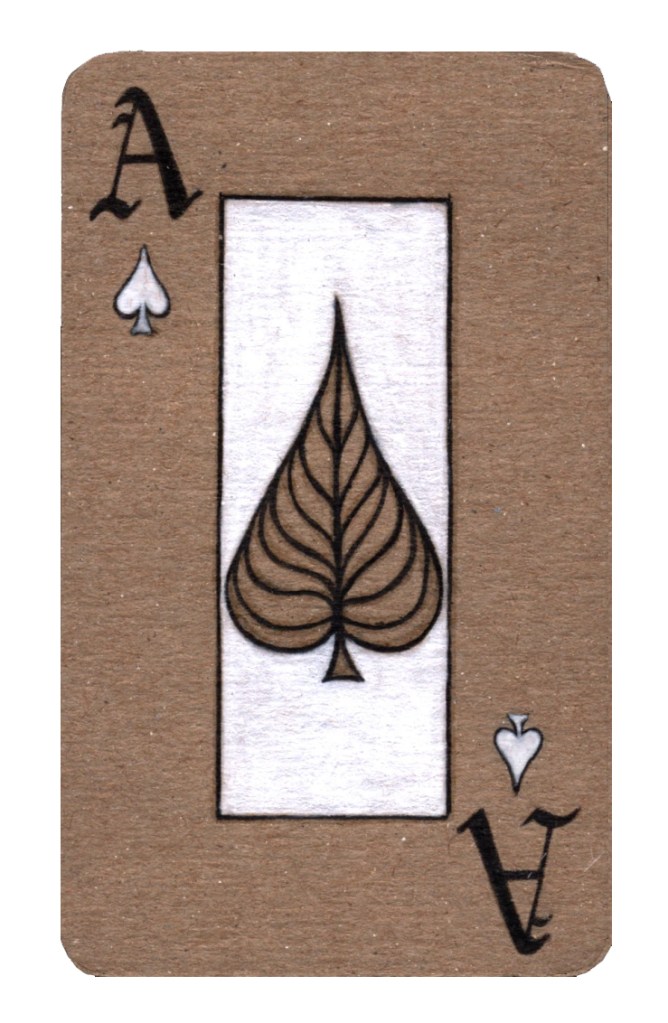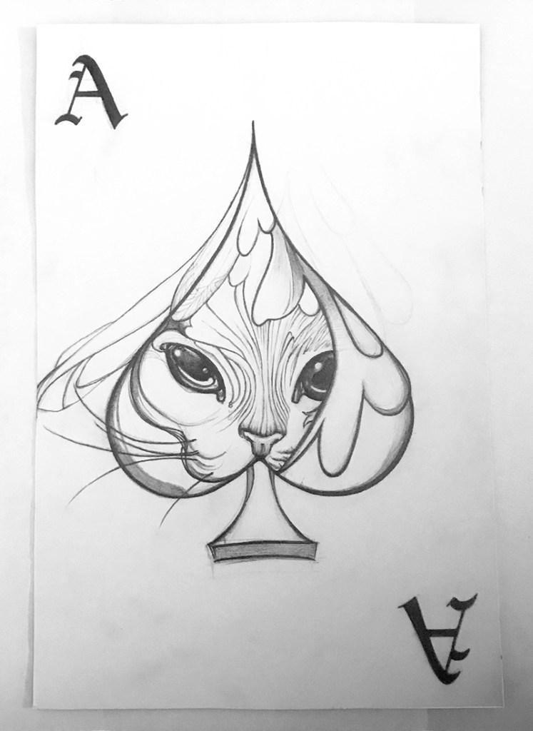 “Ace of Spades”, 2020; graphite and white acrylic on recycled CPG cardstock