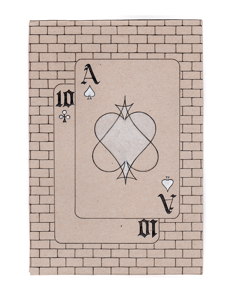 “Ace Ten”, 2020; graphite and white gouache on recycled CPG cardstock