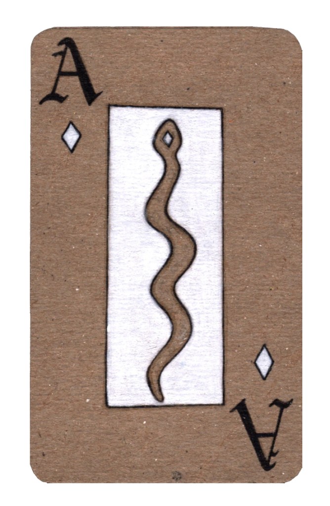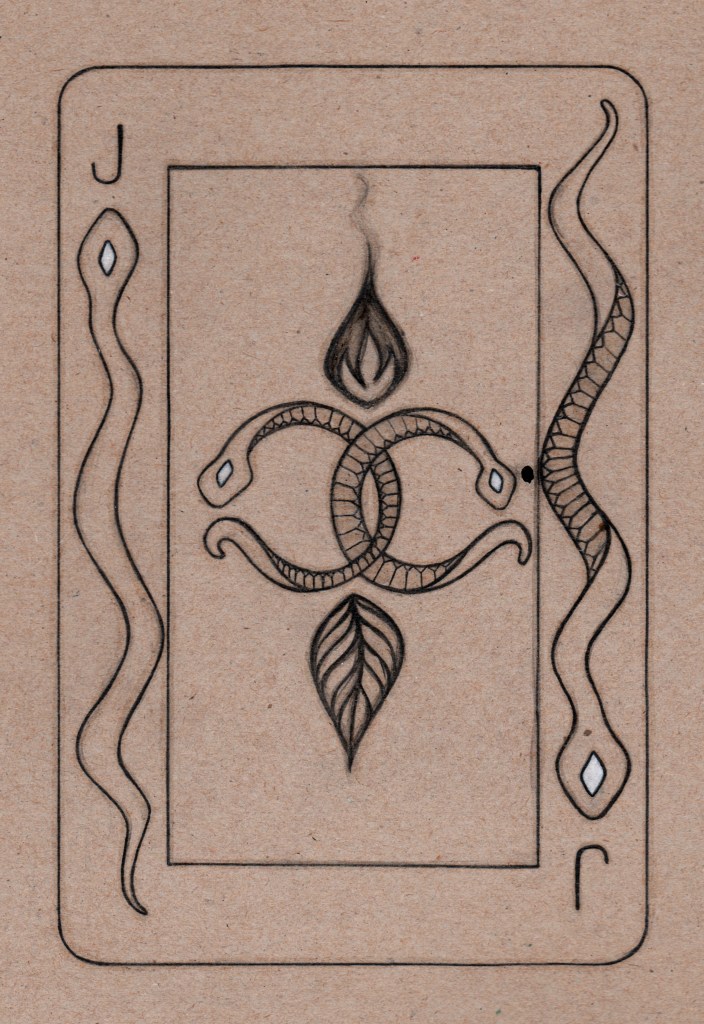 “Jack of Diamonds”, 2020; graphite and white acrylic on recycled CPG cardstock
