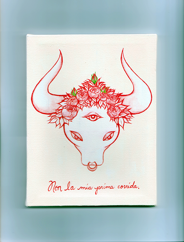 Acrylic and ballpoint pen on canvas, 8 x 10 inches