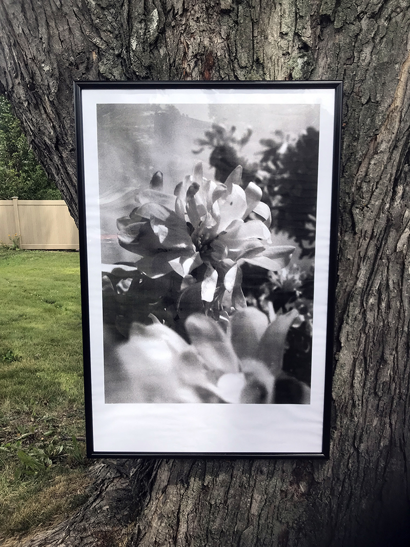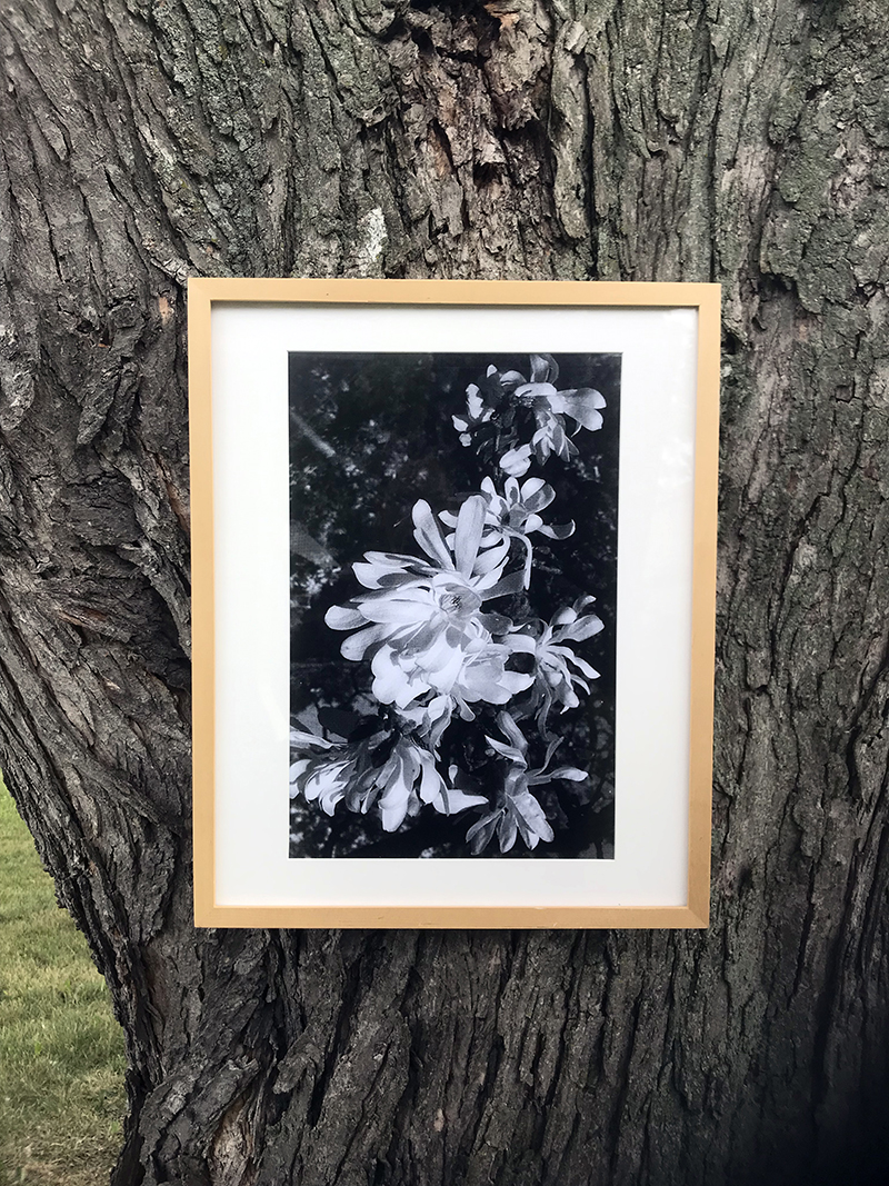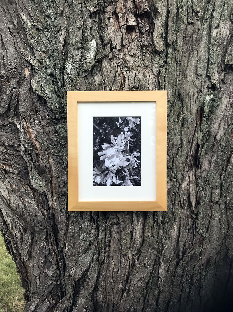 Top Row, Left to Right: 5″x7″ Magnolias in 8″x10″ natural wood frame. 5″x7″ Roses in 8″x10″ black wood frame. SOLD 5″x7″ Magnolias in white 11″x17″ frame. 11″x17″ Ross in 16″x20″ black metal frame.