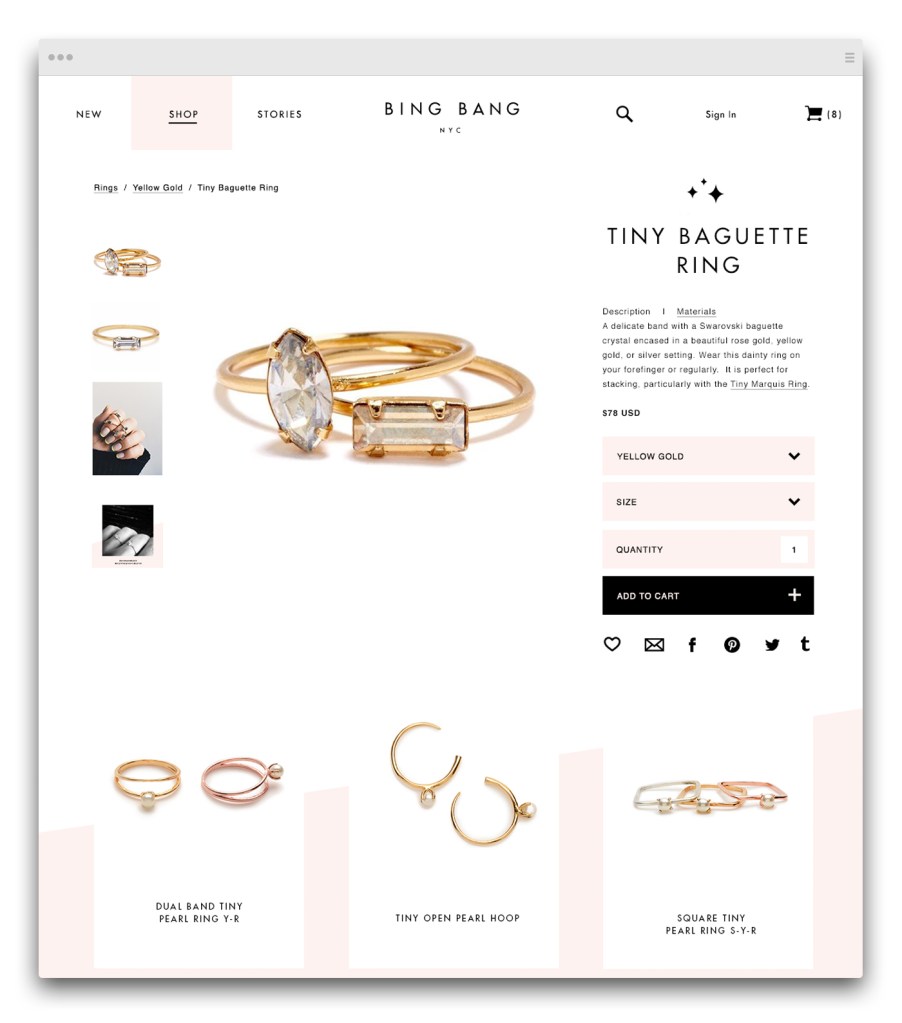 With what started as a word-of-mouth recommendation after wrapping up the NEXT Management website, eventually turned into an a la carte selection of services for New York jewelry company Bing Bang NYC.